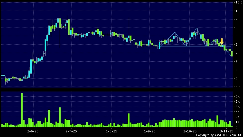 BEISEN HOLDING(09669.HK) appears a downside breakout, dropped below the neckline. Last printed at 7.310; fell 4.194%; on volume of 227.40K shares and turnover of $1.68MRecent Perfo...