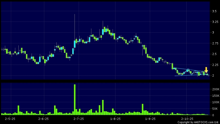 Triangle Breakout means the volatility of price movement is decreasing, stock price finally broke the bottom of triangle. A downward trend will start.(HK stocks quote is delayed for at least 15 mins.Short Selling Data as at 2025-10-24 16:25.)