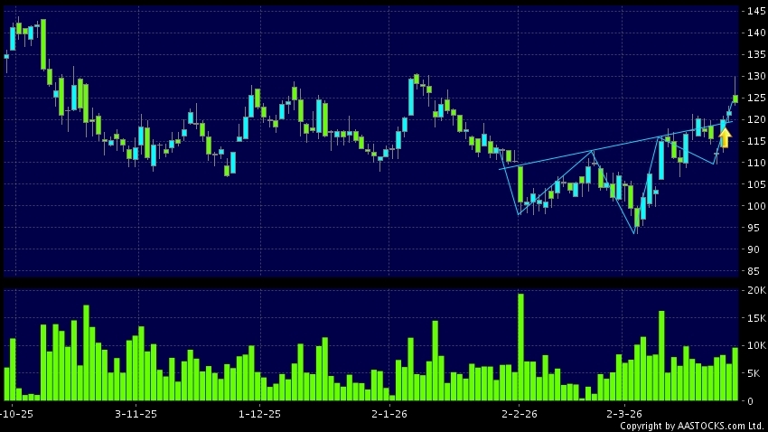 AKESO(09926.HK) appears an upside breakout, rose above the neckline. Last printed at 123.600; rose 1.478%; on volume of 9.74M shares and turnover of $1.24BRecent PerformanceIn 3 da...