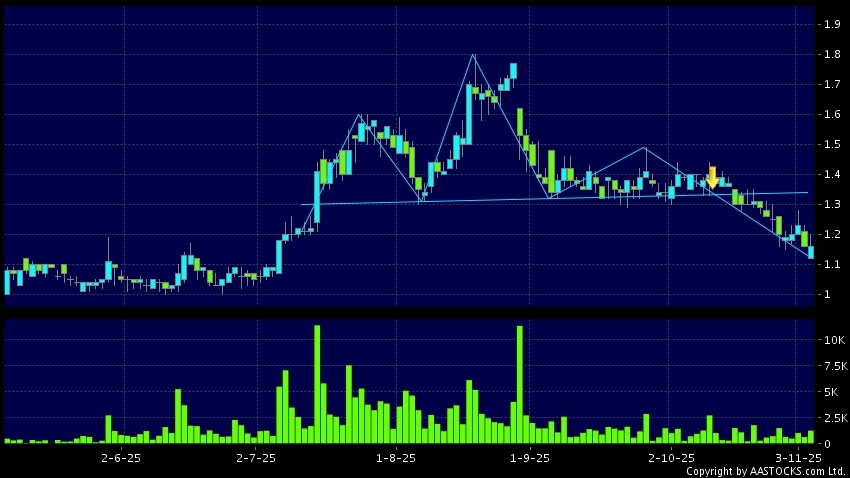 CLOUDR(09955.HK) appears a downside breakout, dropped below the neckline. Last printed at 1.160; Flattish; on volume of 1.25M shares and turnover of $1.43MRecent PerformanceIn 3 da...