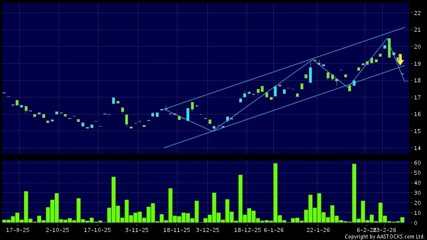 Disclaimer:The information, financial market data, quotes, charts, statistics and / or various technical analysis indicators are automatically generated based on the analyses and interpretations of publicly available information and should be used as references only at your own discretion. Such automatically generated content does not reflect the views or opinions of AASTOCKS.com Limited nor does AASTOCKS.com Limited make any guarantees to their accuracy, completeness, timeliness or correctness. You are advised to consult independent professional advice to verify pricing information or to obtain more detailed market information. Any uses of information or trades executed following the said automatically generated content are taken at your own risk for your own account.