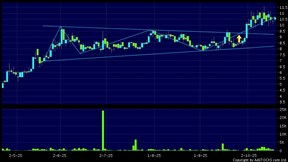 JENSCARE-B(09877.HK) shows a triangle breakout. Last printed at 11.090; rose 8.725%; on volume of 832.80K shares and turnover of $9.11MRecent PerformanceIn 3 days: +6.124%In 5 days: +9.802%In 10 days: +32.024%Recent transaction volume statistics:Volume of last trading day: 380.60K sharesAverage volume over the past 5 days: 768.0...