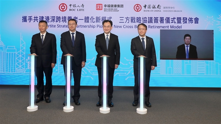 中银集团人寿保险、深圳市幸福健康产业集团与中国银行(03988.HK) +0.090 (+1.931%) 沽空 $2.92亿; 比率 30.451% 深圳市分行签订战略合作框架协议,计划通过整合金融、康养资源优势,共同为大湾区居民打造「金融+康养」跨境养老综合解决方案。中银人寿执行总裁邓子平表示,未来将依托中行「中银银发」品牌优势,透过优势互补与资源共享,便利市民跨境养老安排,促进港深养老资源对接。(gc/w)(港股报价延迟最少十五分钟。沽空资料截至 2025-11-20 12:25。)