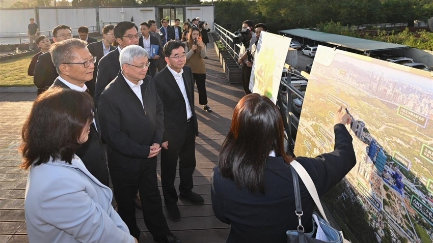 来港宣讲中共二十届四中全会精神的中央宣讲团成员,中国科学院院长、党组书记侯建国,以及中央财经委员会办公室副主任、中央农村工作领导小组办公室副主任祝卫东周一(24日)下午在财政司司长陈茂波陪同下,到北部都会区调研交流。