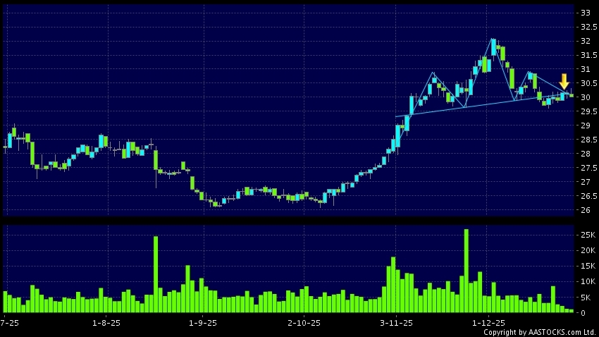 头肩顶是典型的沽出讯号,当股价跌穿支持线(颈线)时,跌势确认股价将持续下跌,技术走势偏软。(港股报价延迟最少十五分钟。沽空资料截至 2025-12-31 12:25。)