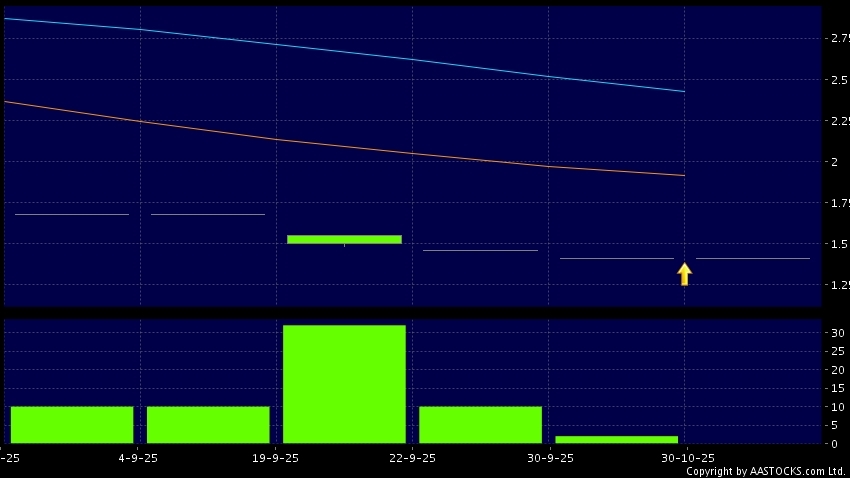 免责声明:以上金融市场数据丶报价丶图表 及/或各种技术分析指标乃根据公开资料分析和演释自动生成的,仅作参考使用。此类自动生成的内容并不代表AASTOCKS.com Limited的立场。AASTOCKS.com Limited并不保证其准确性丶完整性丶实时性或者正确性。阁下应谘询独立专业意见,以核实定价资料或获取更详细的市场信息及须为所有跟随此类自动生成的内容执行的交易或使用该内容负责。