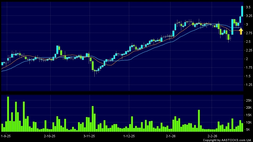 黄金交叉是一个利好讯号,指股价的短期移动平均线升穿长期移动平均线,例如50天线升穿250天线,在图表上构成交叉的形状。股价通常会上升形成一个上升趋势,技术走势向好。(港股报价延迟最少十五分钟。沽空资料截至 2026-03-12 12:25。)