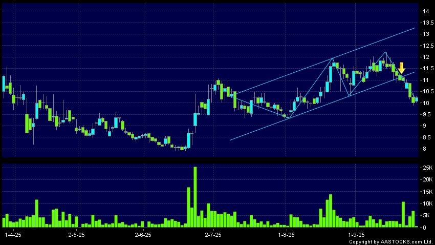 区域突破指股价在过去的一段时间只在一个范围在内活动,然後股价下跌作出突破,跌穿区域的底部,技术走势偏软。(港股报价延迟最少十五分钟。)