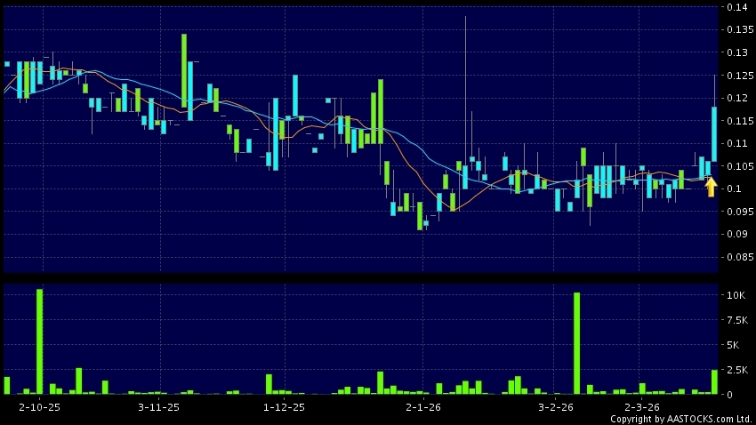 新确科技(01063.HK) -0.007 (-6.306%) 10天移动平均线升穿20天移动平均线,出现黄金交叉。现价报0.118,上升11.321%,成交量2.44百万股,成交额28.37万。