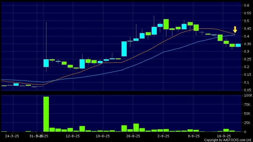 死亡交叉是一个利淡信号,指股价的短期移动平均线跌穿长期移动平均线,例如50天线跌穿250天线,在图表上构成交叉的形状。股价通常会下跌形成一个下降趋势,技术走势偏软。(港股报价延迟最少十五分钟。)