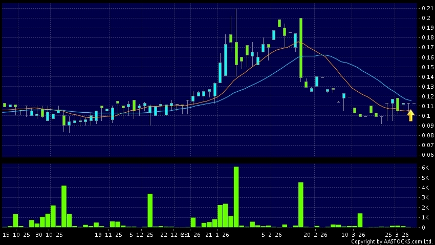 迪诺斯环保(01452.HK) -0.001 (-0.885%) 10天移动平均线升穿20天移动平均线,出现黄金交叉。现价报0.113,无升跌,成交量0.00股,成交额0.00。