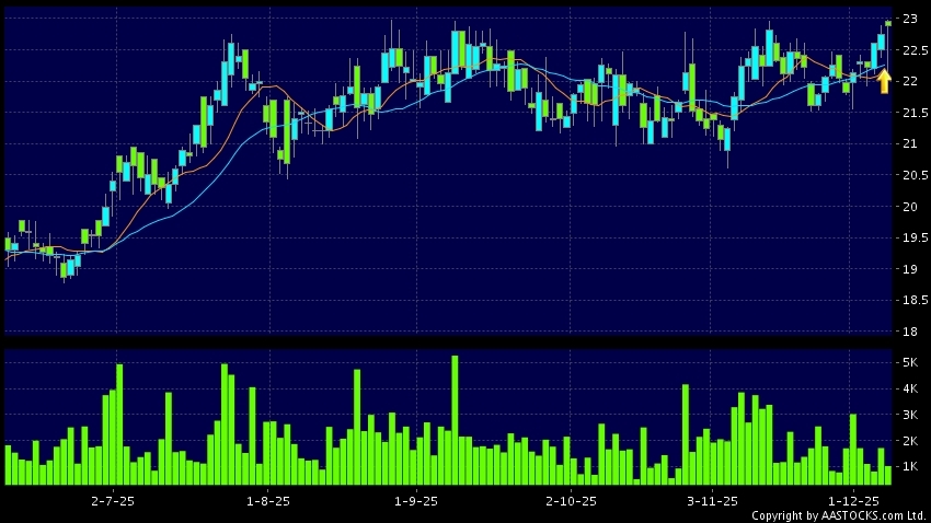 黄金交叉是一个利好讯号,指股价的短期移动平均线升穿长期移动平均线,例如50天线升穿250天线,在图表上构成交叉的形状。股价通常会上升形成一个上升趋势,技术走势向好。(港股报价延迟最少十五分钟。沽空资料截至 2025-12-09 16:25。)