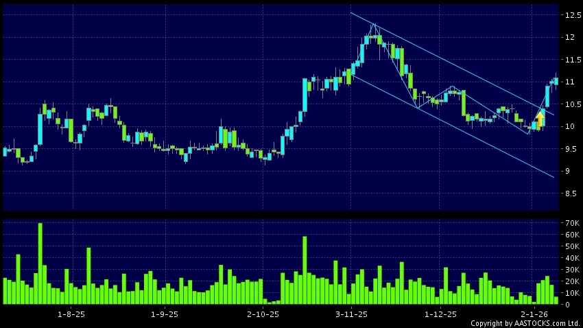 区域突破指股价在过去的一段时间只在一个范围在内活动,然後股价上升作出突破,升穿区域的顶部,技术走势向好。(港股报价延迟最少十五分钟。沽空资料截至 2026-01-09 16:25。)