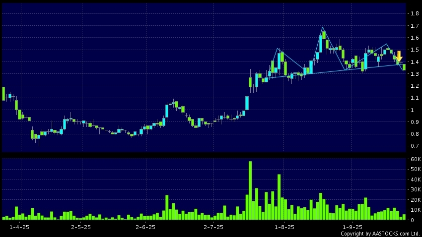 心通医疗-B(02160.HK) +0.030 (+2.273%) 呈现头肩顶向下突破。现价报1.330,下跌4.317%,成交量5.55百万股,成交额7.43百万。