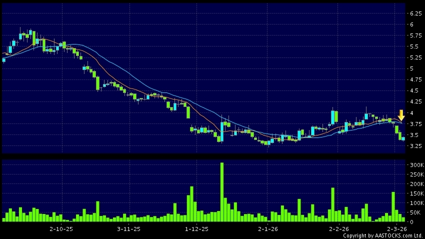 死亡交叉是一个利淡信号,指股价的短期移动平均线跌穿长期移动平均线,例如50天线跌穿250天线,在图表上构成交叉的形状。股价通常会下跌形成一个下降趋势,技术走势偏软。(港股报价延迟最少十五分钟。沽空资料截至 2026-03-04 16:25。)