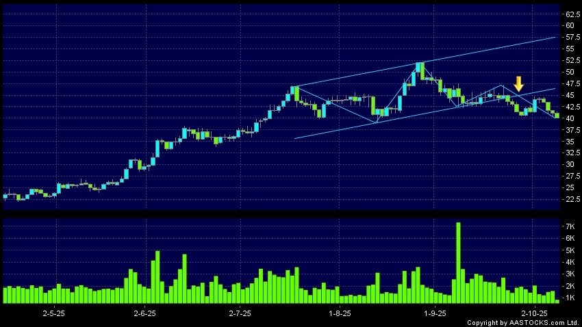 区域突破指股价在过去的一段时间只在一个范围在内活动,然後股价下跌作出突破,跌穿区域的底部,技术走势偏软。(港股报价延迟最少十五分钟。沽空资料截至 2025-10-10 16:25。)