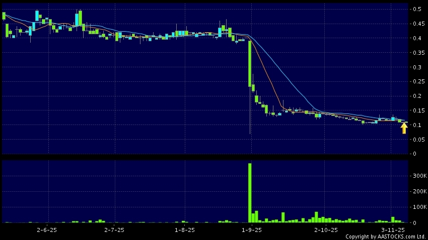 新质数字(02322.HK) -0.006 (-5.085%) 10天移动平均线升穿20天移动平均线,出现黄金交叉。现价报0.108,无升跌,成交量1.21百万股,成交额13.21万。