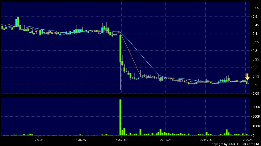 新质数字(02322.HK) -0.006 (-5.085%) 10天移动平均线跌穿20天移动平均线,出现死亡交叉。现价报0.105,无升跌,成交量1.98百万股,成交额21.00万。