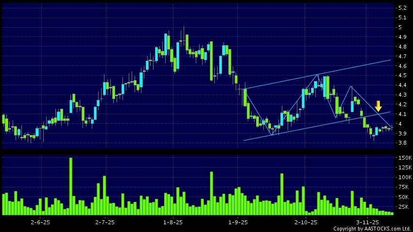 区域突破指股价在过去的一段时间只在一个范围在内活动,然後股价下跌作出突破,跌穿区域的底部,技术走势偏软。(港股报价延迟最少十五分钟。沽空资料截至 2025-12-12 16:25。)