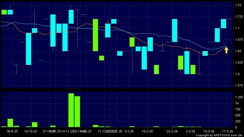 K CASH集团(02483.HK) 0.000 (0.000%) 10天移动平均线升穿20天移动平均线,出现黄金交叉。现价报1.720,无升跌,成交量0.00股,成交额0.00。