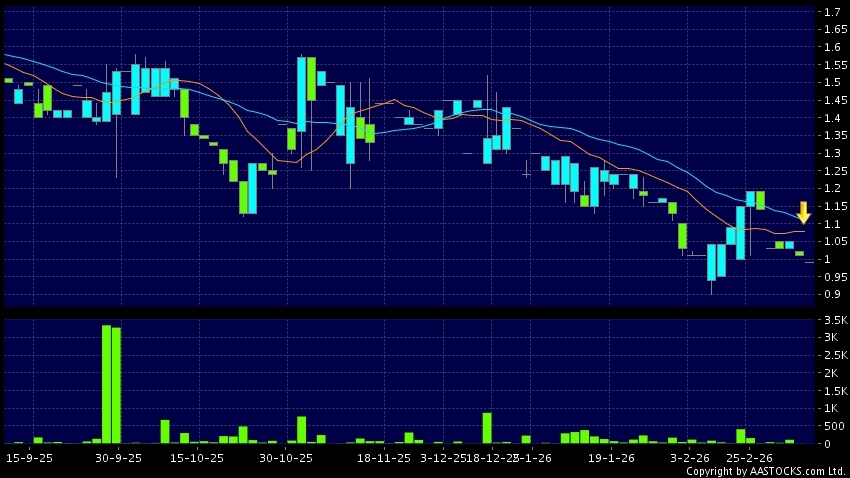 乐思集团(02540.HK) -0.090 (-8.182%) 10天移动平均线跌穿20天移动平均线,出现死亡交叉。现价报0.980,下跌2.970%,成交量0.00股,成交额0.00。