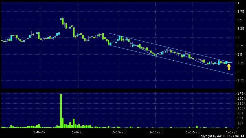 区域突破指股价在过去的一段时间只在一个范围在内活动,然後股价上升作出突破,升穿区域的顶部,技术走势向好。(港股报价延迟最少十五分钟。沽空资料截至 2026-01-08 16:25。)
