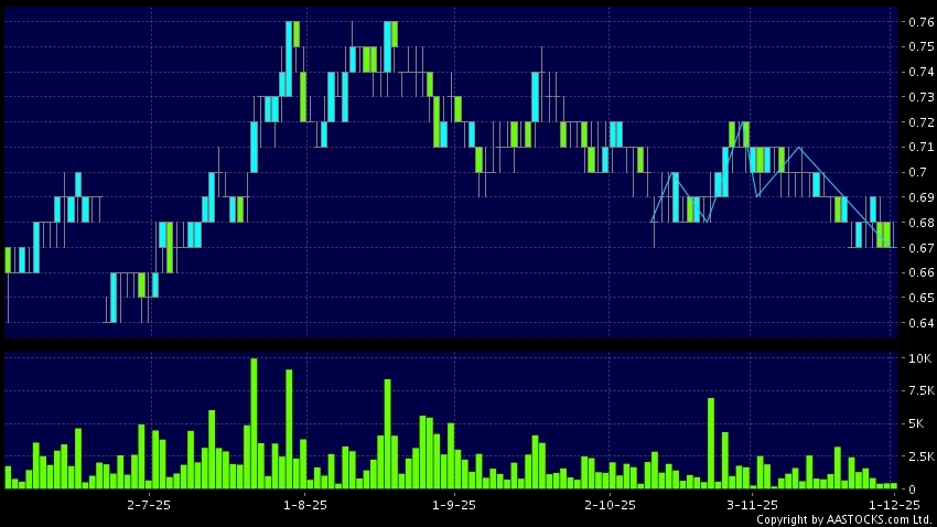 天津港发展(03382.HK) 0.000 (0.000%) 沽空 $5.56千; 比率 0.474% 呈现三重顶突破向下。现价报0.680,上升1.493%,成交量45.80万股,成交额30.98万。