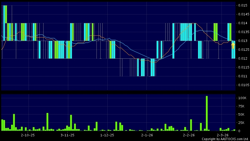 百利达集团控股(08179.HK) 0.000 (0.000%) 10天移动平均线升穿20天移动平均线,出现黄金交叉。现价报0.013,无升跌,成交量4.43百万股,成交额5.34万。