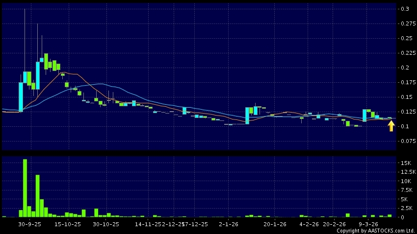 骏码半导体(08490.HK) 0.000 (0.000%) 10天移动平均线升穿20天移动平均线,出现黄金交叉。现价报0.114,无升跌,成交量0.00股,成交额0.00。