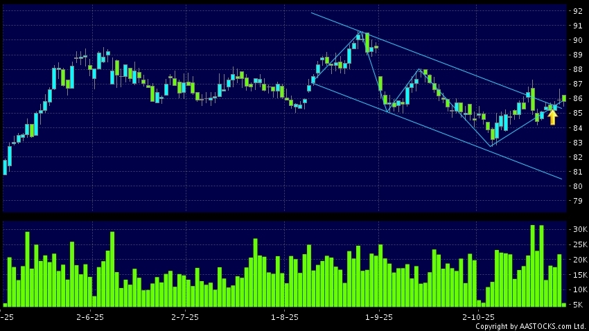 区域突破指股价在过去的一段时间只在一个范围在内活动,然後股价上升作出突破,升穿区域的顶部,技术走势向好。(港股报价延迟最少十五分钟。沽空资料截至 2025-10-31 16:25。)