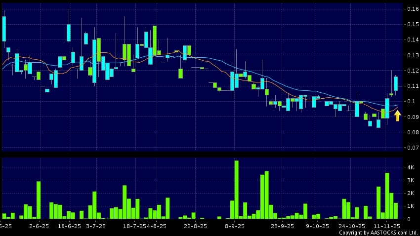 大中華控股(00021.HK) 0.000 (0.000%) 10天移動平均線升穿20天移動平均線,出現黃金交叉。現價報0.110,下跌5.172%,成交量0.00股,成交額0.00。