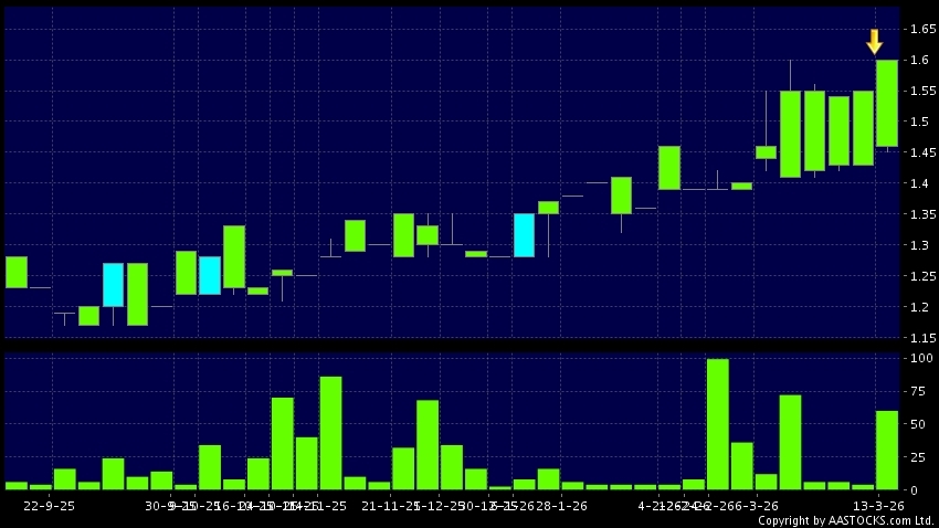 免責聲明:以上金融市場數據、報價、圖表 及/或各種技術分析指標乃根據公開資料分析和演釋自動生成的,僅作參考使用。此類自動生成的內容並不代表AASTOCKS.com Limited的立場。AASTOCKS.com Limited並不保證其準確性、完整性、實時性或者正確性。閣下應諮詢獨立專業意見,以核實定價資料或獲取更詳細的市場信息及須為所有跟隨此類自動生成的內容執行的交易或使用該內容負責。