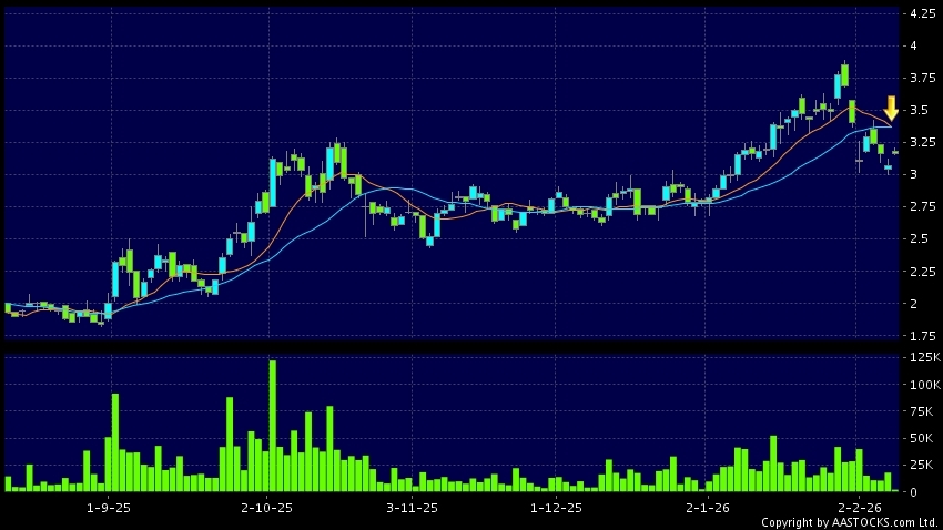 死亡交叉是一個利淡信號,指股價的短期移動平均線跌穿長期移動平均線,例如50天線跌穿250天線,在圖表上構成交叉的形狀。股價通常會下跌形成一個下降趨勢,技術走勢偏軟。(港股報價延遲最少十五分鐘。沽空資料截至 2026-02-23 16:25。)