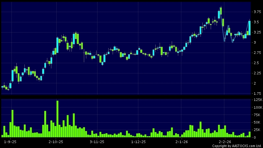 免責聲明:以上金融市場數據、報價、圖表 及/或各種技術分析指標乃根據公開資料分析和演釋自動生成的,僅作參考使用。此類自動生成的內容並不代表AASTOCKS.com Limited的立場。AASTOCKS.com Limited並不保證其準確性、完整性、實時性或者正確性。閣下應諮詢獨立專業意見,以核實定價資料或獲取更詳細的市場信息及須為所有跟隨此類自動生成的內容執行的交易或使用該內容負責。