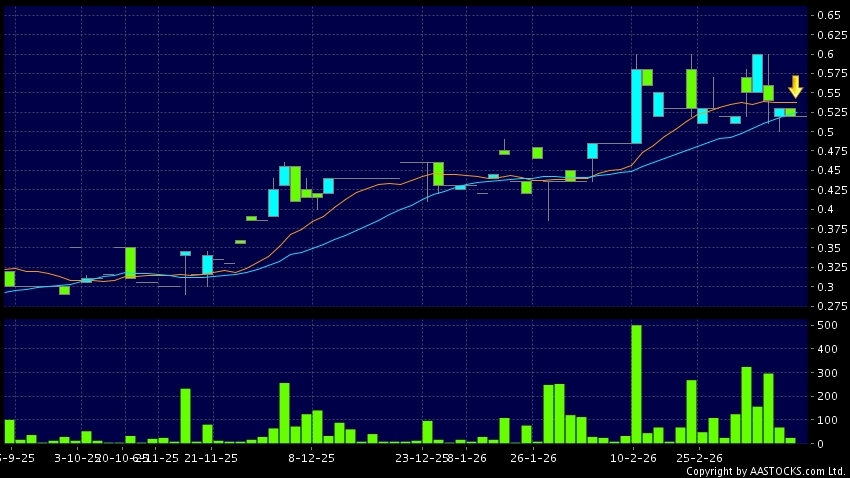 免責聲明:以上金融市場數據、報價、圖表 及/或各種技術分析指標乃根據公開資料分析和演釋自動生成的,僅作參考使用。此類自動生成的內容並不代表AASTOCKS.com Limited的立場。AASTOCKS.com Limited並不保證其準確性、完整性、實時性或者正確性。閣下應諮詢獨立專業意見,以核實定價資料或獲取更詳細的市場信息及須為所有跟隨此類自動生成的內容執行的交易或使用該內容負責。
