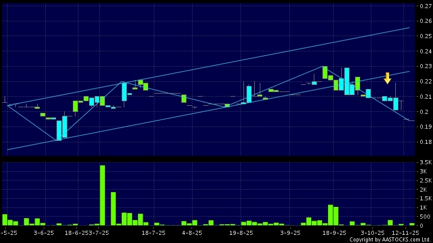 同得仕(集團)(00518.HK) 0.000 (0.000%) 呈現區域下軌突破。現價報0.194,下跌0.513%,成交量13.20萬股,成交額2.56萬。