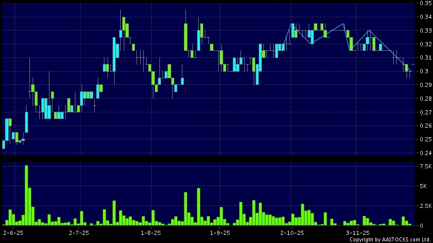 香港華人有限公司(00655.HK) -0.005 (-1.724%) 呈現三重頂突破向下。現價報0.305,上升1.667%,成交量3.00萬股,成交額9.15千。