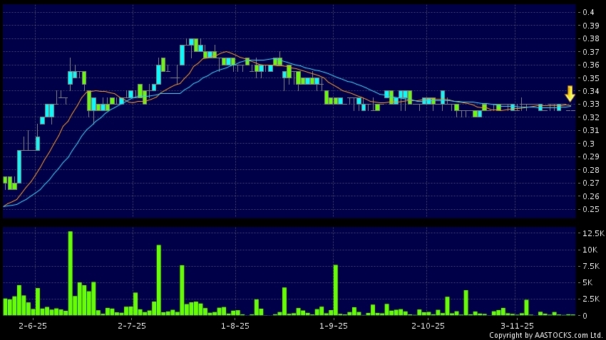 利亞零售(00831.HK) 0.000 (0.000%) 10天移動平均線跌穿20天移動平均線,出現死亡交叉。現價報0.325,無升跌,成交量15.40萬股,成交額5.01萬。