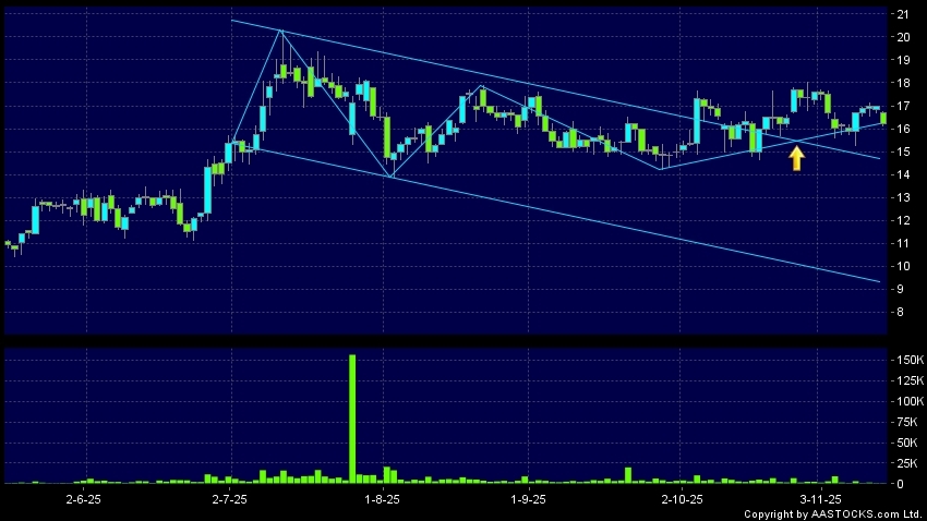 區域突破指股價在過去的一段時間只在一個範圍在內活動,然後股價上升作出突破,升穿區域的頂部,技術走勢向好。(港股報價延遲最少十五分鐘。沽空資料截至 2025-12-02 12:25。)