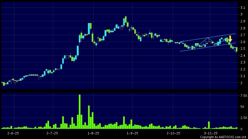 免責聲明:以上金融市場數據、報價、圖表 及/或各種技術分析指標乃根據公開資料分析和演釋自動生成的,僅作參考使用。此類自動生成的內容並不代表AASTOCKS.com Limited的立場。AASTOCKS.com Limited並不保證其準確性、完整性、實時性或者正確性。閣下應諮詢獨立專業意見,以核實定價資料或獲取更詳細的市場信息及須為所有跟隨此類自動生成的內容執行的交易或使用該內容負責。
