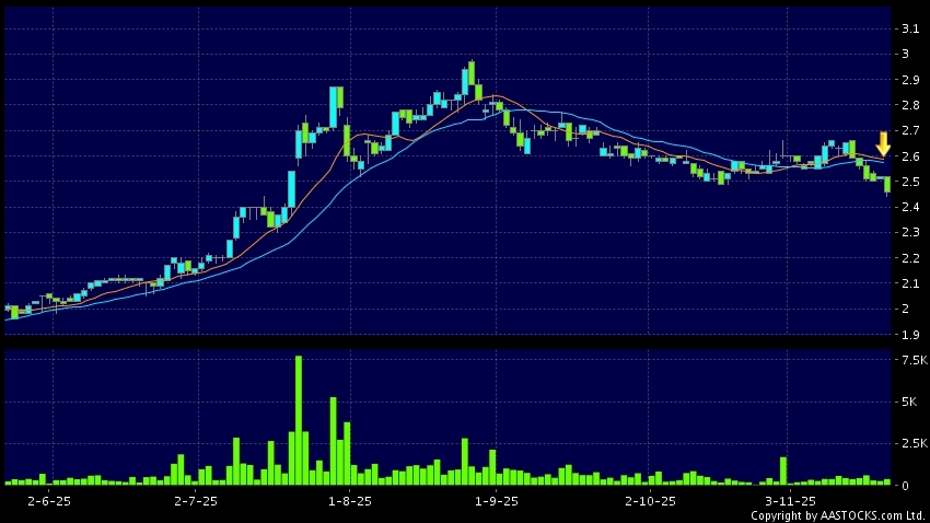 免責聲明:以上金融市場數據、報價、圖表 及/或各種技術分析指標乃根據公開資料分析和演釋自動生成的,僅作參考使用。此類自動生成的內容並不代表AASTOCKS.com Limited的立場。AASTOCKS.com Limited並不保證其準確性、完整性、實時性或者正確性。閣下應諮詢獨立專業意見,以核實定價資料或獲取更詳細的市場信息及須為所有跟隨此類自動生成的內容執行的交易或使用該內容負責。