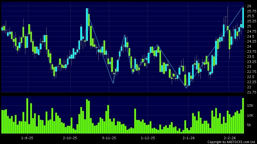 免責聲明:以上金融市場數據、報價、圖表 及/或各種技術分析指標乃根據公開資料分析和演釋自動生成的,僅作參考使用。此類自動生成的內容並不代表AASTOCKS.com Limited的立場。AASTOCKS.com Limited並不保證其準確性、完整性、實時性或者正確性。閣下應諮詢獨立專業意見,以核實定價資料或獲取更詳細的市場信息及須為所有跟隨此類自動生成的內容執行的交易或使用該內容負責。