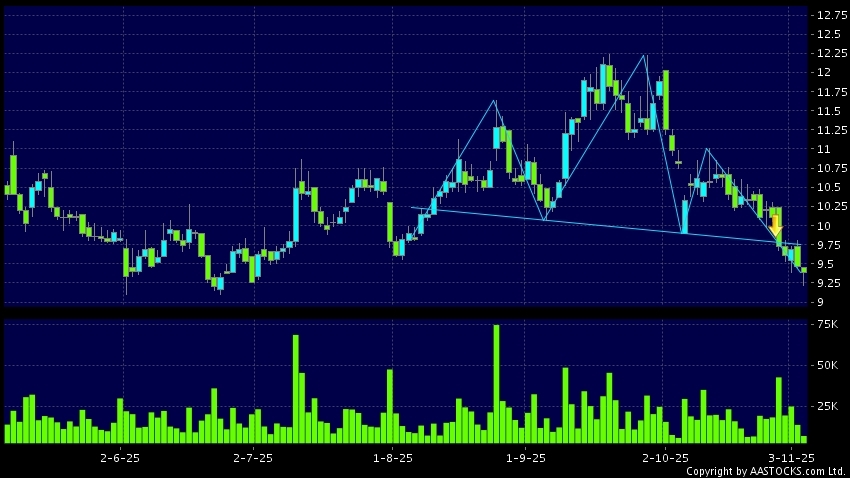 頭肩頂是典型的沽出訊號,當股價跌穿支持線(頸線)時,跌勢確認股價將持續下跌,技術走勢偏軟。(港股報價延遲最少十五分鐘。沽空資料截至 2025-11-06 12:25。)