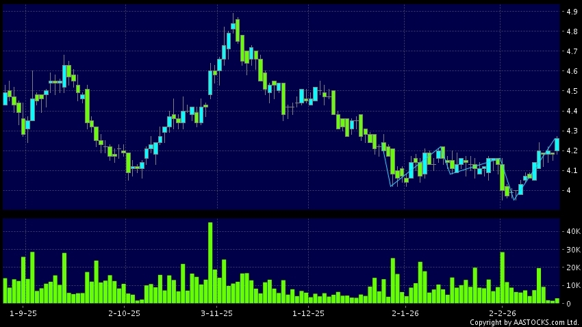 免責聲明:以上金融市場數據、報價、圖表 及/或各種技術分析指標乃根據公開資料分析和演釋自動生成的,僅作參考使用。此類自動生成的內容並不代表AASTOCKS.com Limited的立場。AASTOCKS.com Limited並不保證其準確性、完整性、實時性或者正確性。閣下應諮詢獨立專業意見,以核實定價資料或獲取更詳細的市場信息及須為所有跟隨此類自動生成的內容執行的交易或使用該內容負責。