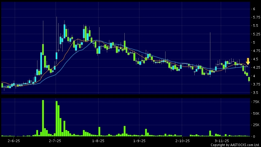 死亡交叉是一個利淡信號,指股價的短期移動平均線跌穿長期移動平均線,例如50天線跌穿250天線,在圖表上構成交叉的形狀。股價通常會下跌形成一個下降趨勢,技術走勢偏軟。(港股報價延遲最少十五分鐘。沽空資料截至 2025-12-10 16:25。)