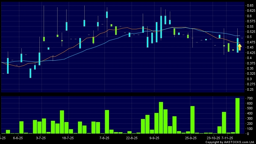 星凱控股(01166.HK) +0.020 (+3.846%) 10天移動平均線升穿20天移動平均線,出現黃金交叉。現價報0.495,無升跌,成交量0.00股,成交額0.00。
