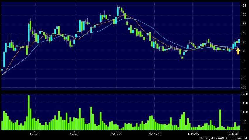 黃金交叉是一個利好訊號,指股價的短期移動平均線升穿長期移動平均線,例如50天線升穿250天線,在圖表上構成交叉的形狀。股價通常會上升形成一個上升趨勢,技術走勢向好。(港股報價延遲最少十五分鐘。沽空資料截至 2026-01-09 16:25。)
