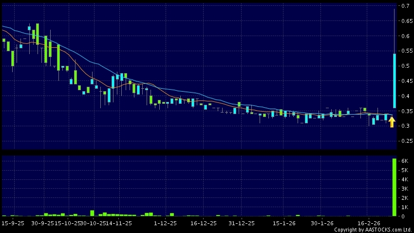 免責聲明:以上金融市場數據、報價、圖表 及/或各種技術分析指標乃根據公開資料分析和演釋自動生成的,僅作參考使用。此類自動生成的內容並不代表AASTOCKS.com Limited的立場。AASTOCKS.com Limited並不保證其準確性、完整性、實時性或者正確性。閣下應諮詢獨立專業意見,以核實定價資料或獲取更詳細的市場信息及須為所有跟隨此類自動生成的內容執行的交易或使用該內容負責。