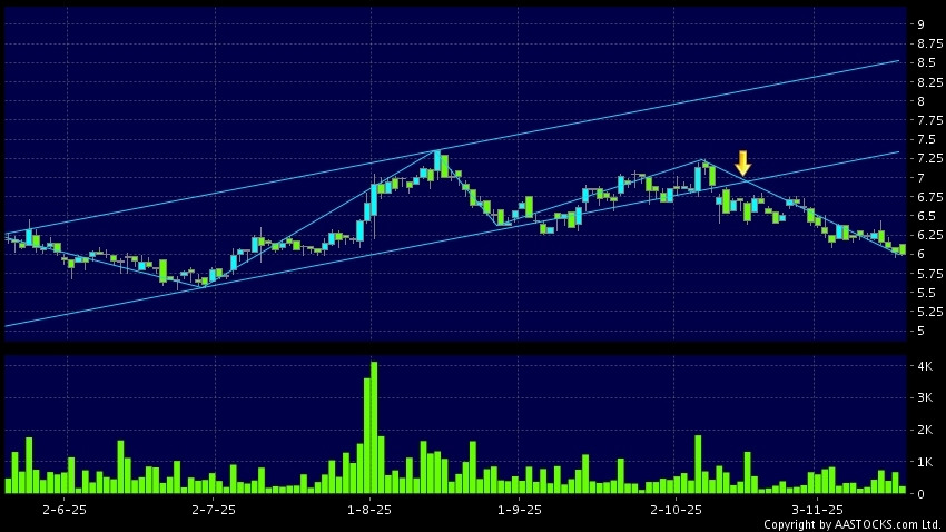 區域突破指股價在過去的一段時間只在一個範圍在內活動,然後股價下跌作出突破,跌穿區域的底部,技術走勢偏軟。(港股報價延遲最少十五分鐘。沽空資料截至 2025-12-15 16:25。)