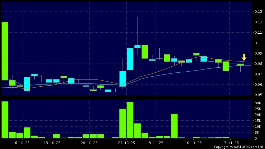 維力生活科技(01703.HK) 0.000 (0.000%) 10天移動平均線跌穿20天移動平均線,出現死亡交叉。現價報0.078,無升跌,成交量0.00股,成交額0.00。